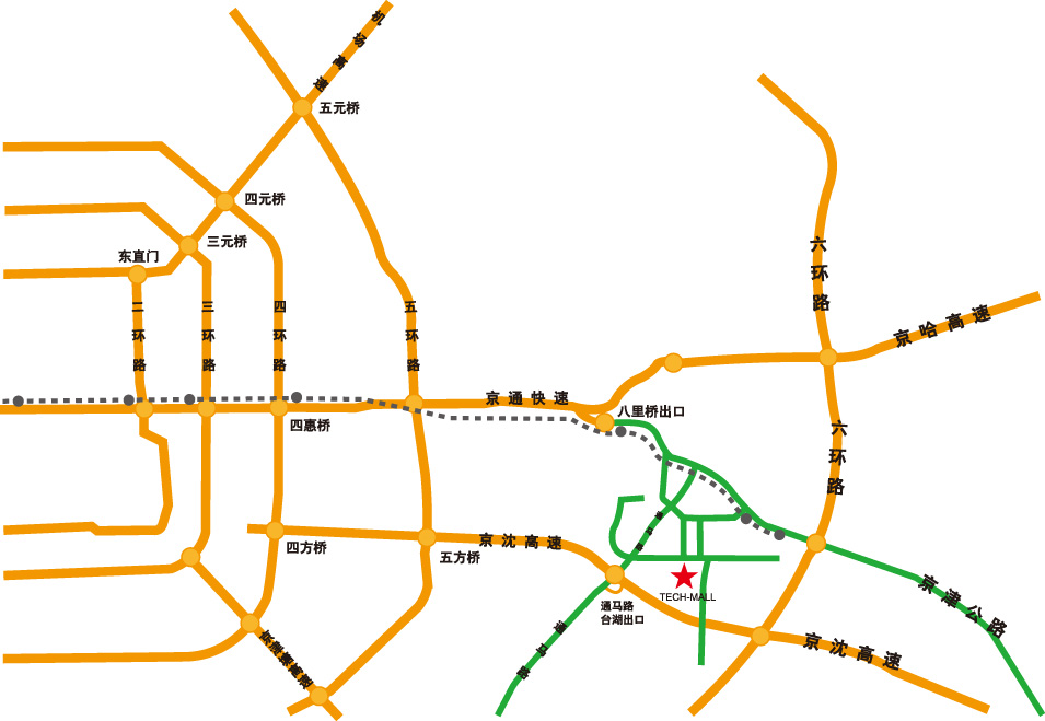 International Tech-Mall for Advanced Technology products Exhibition Center is located in TongZhou, Beijing, 20 miles from Tiananmen Square. It is in the south side on the extension line of East Changan Street which is convenient to get to. The whole center takes 210,000 square meters with the main hall 8600 square meters. In the center, it is equipped with a giant projector and other perfect facilities. And also has more than 1000 parking places. |